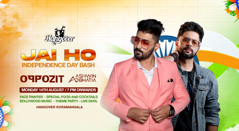 Bollywood Night Party MONDAY - INDEPENDENCE DAY EDITION featuring DJ OPPOZIT | Dj ASHWIN BHATIYA only at Hangover XL, Koramangala. Enjoy the desi tracks with friends in this beautiful nightclub or dance to the best of Bollywood, and Punjabi & Commercial music. Hurry Register Now!