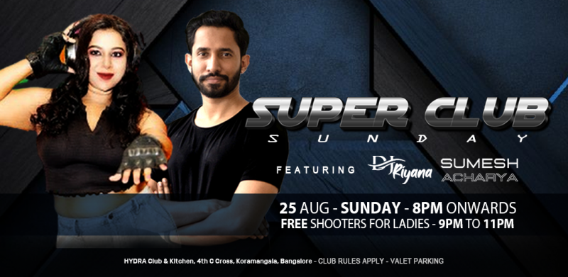 "Get ready to dance the night away at Hydra Club and Kitchen's Sunday Night Superclub! Join us for a Bollywood party like no other, featuring the electrifying beats of DJ Riyana and DJ Sumesh Acharya. Ladies, enjoy free shooters all night long! Don’t miss out on the ultimate Sunday night experience!"