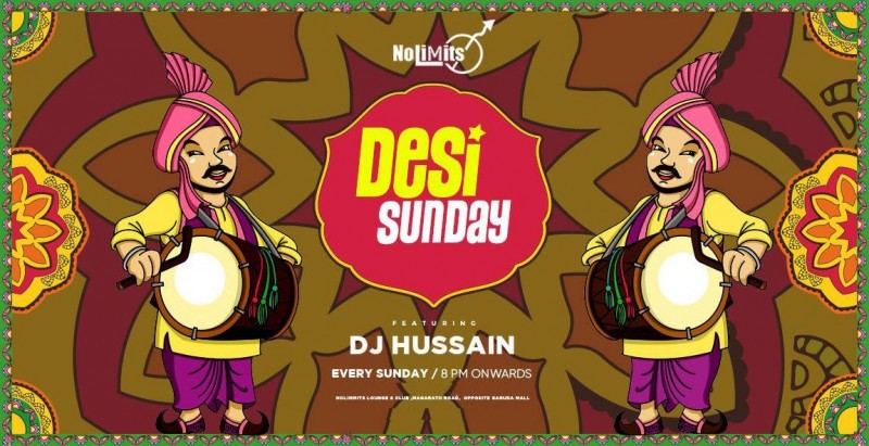 Get your desi quotient a notch higher as we are back with our monthly dose Desi Sunday with DJ HUSSAIN. So dance till you drop this Sunday, 8PM onwards for Desi Sunday at your favourite NoLimmits Lounge and Club. Good food, desi tracks and a young night at our Sunday event “Desi Sunday” Ft. DJ Hussain at Nolimmits Lounge & Club. Let’s party on a Sunday evening at the best night club in Bangalore. The event is more beautified with the eye catchy LED lightings, Mind Blowing Sound System, which you can’t find elsewhere!! Biggest dance floor. With Delicious Choice of food, The Perfect place to have your memorable times.