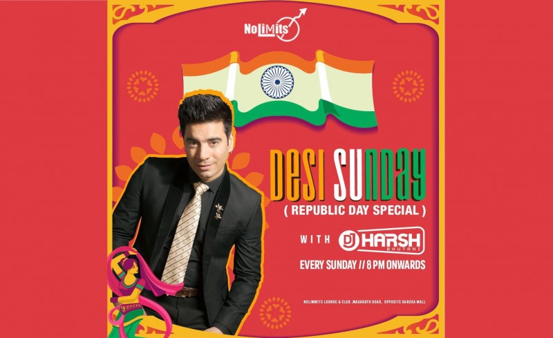 Surrender to the desi music spun by DJ HARSH BHUTANI. So dance till you drop this Sunday, 8PM onwards for Desi Sunday at your favourite NoLimmits Lounge and Club.