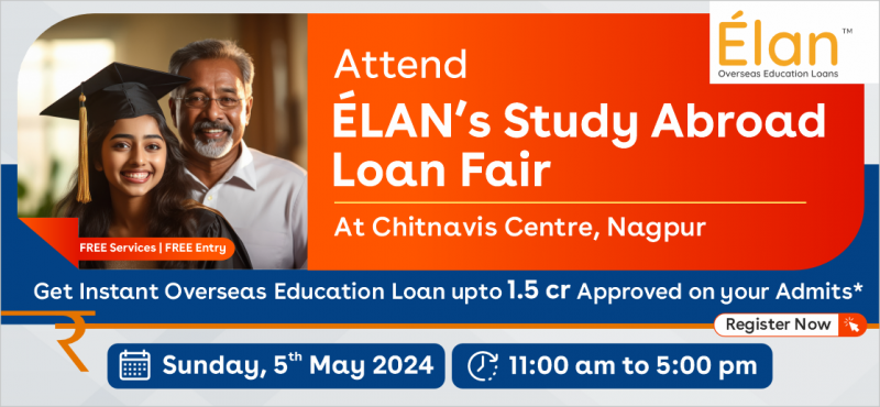 Join us at ÉLAN's Study Abroad Loan Fair on Saturday, May 5th, 2024, from 11:00 am to 5:00 pm at Chitnavis Center, Nagpur, where we'll guide you through everything you need to know about foreign education loans.